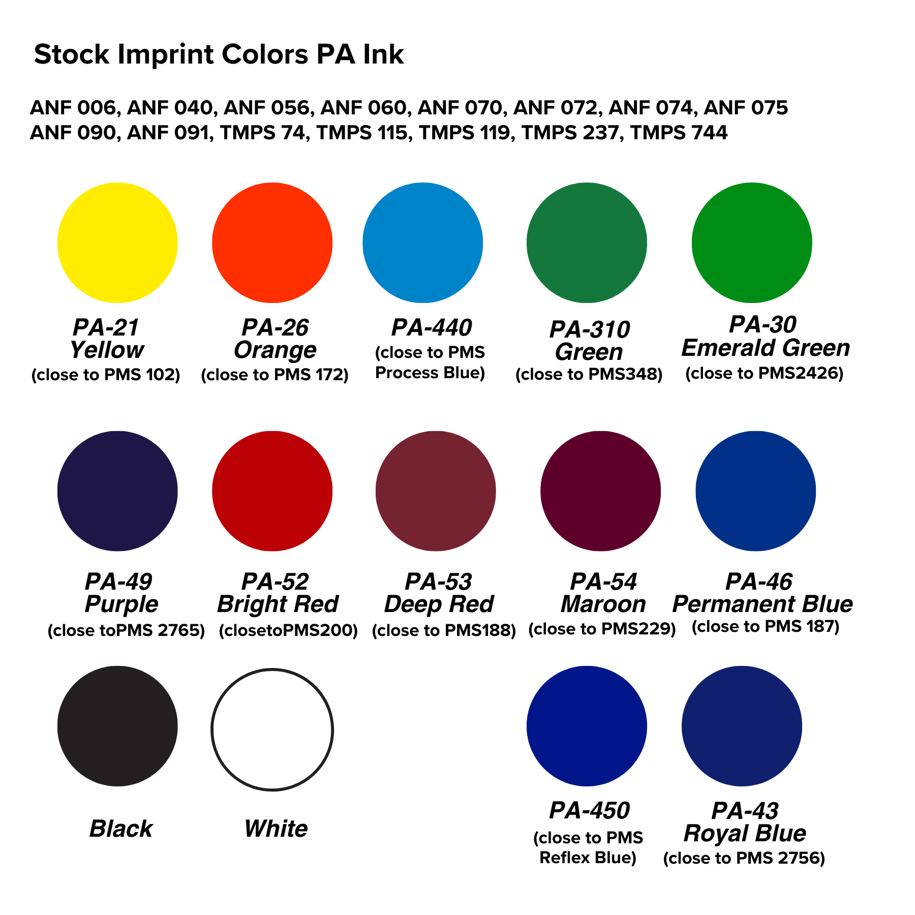 See image for screen print imprint color options.